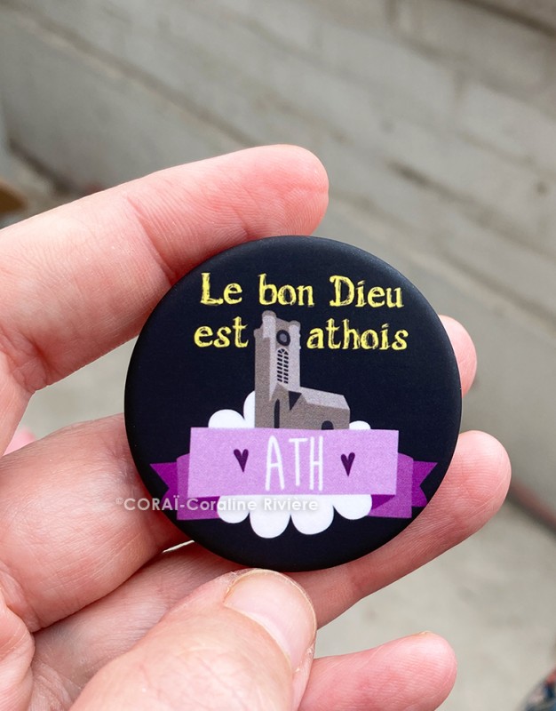 Graphisme création originale Coraline Rivière pour la marque Coraï sur le thème de la Ducasse d'Ath: dessin du Petit David visant le géant Mr Goliath, pourvu que ce soit une année de chance! Dans les couleurs officielles d'Ath: jaune, blanc et mauve.